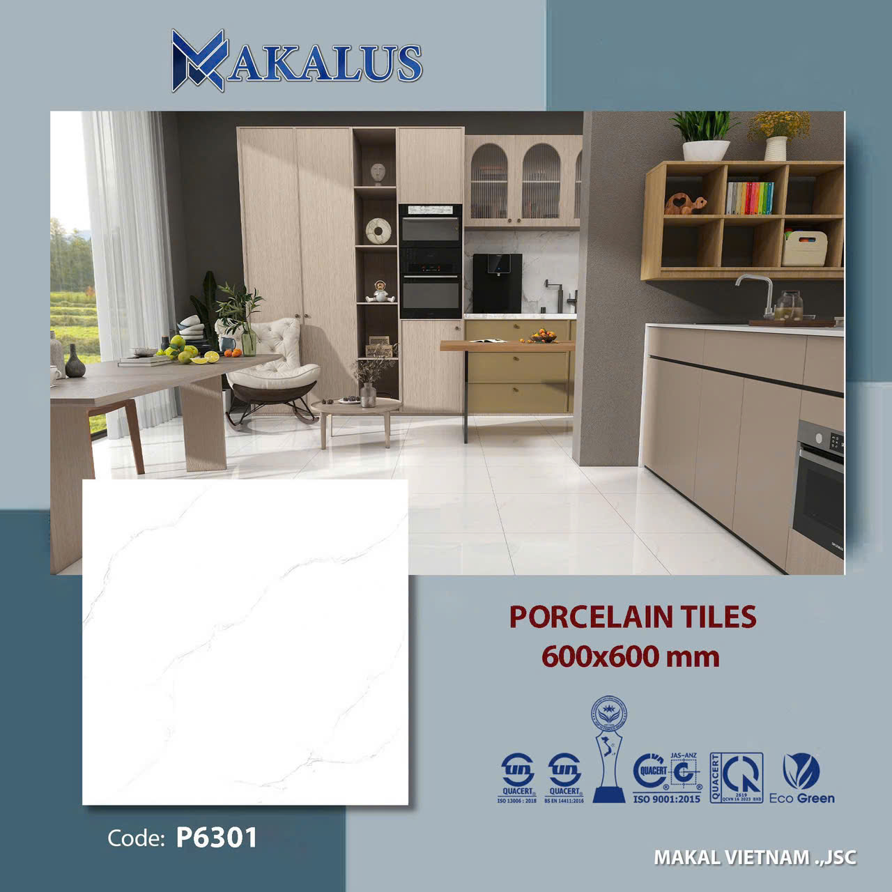 Gạch lát nền Makalus nổi bật với độ bền cao, thiết kế đẹp và giá thành hợp lý. Hai kích thước được ưa chuộng nhất hiện nay là 60×60 và 80×80, phù hợp cho nhiều công trình từ nhà ở đến dự án thương mại.